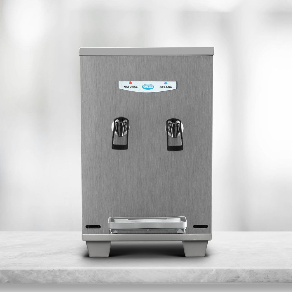 Com opções de torneira ou jato (1 Torneira Gelada e 1 natural de série), ambos de desenvolvimento exclusivo Frisbel.